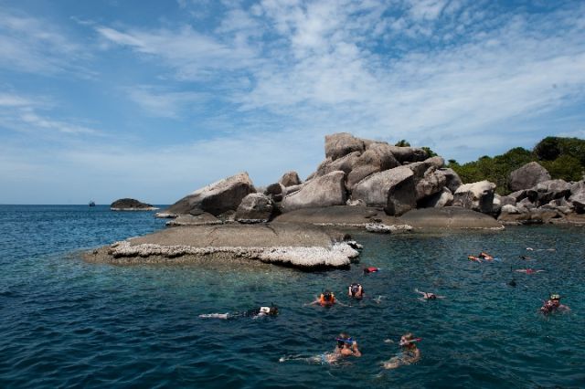 2012年7月31日,一群游客在泰国涛岛的近海海湾浮潜。(新华社记者刘潺摄)
