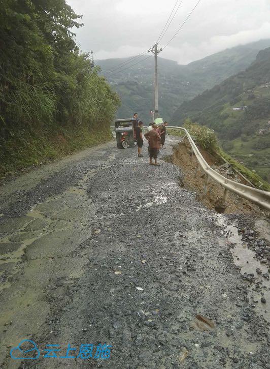 2018年7月6日早上7点左右,走桑线K22+000处,路基缺口长约50米宽度约1.5米高约7米,未造成交通中断,已经放置警示标志提醒过往车辆观察通行。