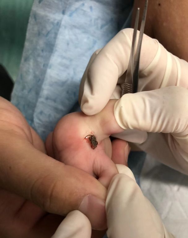 因为天热,2岁的女童楚楚赤脚在家走来走去,妈妈无意中瞄到女儿大脚趾末端竟凭空长出一颗“黑痣”,凑近一看吓坏了,竟然是虫子。(此前,广报君也曾报道过:2岁女孩脚趾间多了颗“黑痣”,让人汗毛倒竖!这种小虫家里竟也有!)