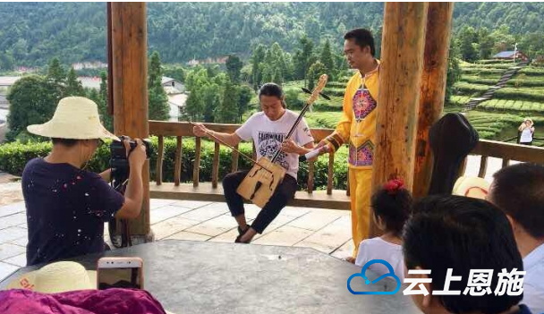 7月10日,中央民族歌舞团一行46人,来到宣恩县伍家台参观茶园,与当地村民们一起亲手采摘夏茶,赏茶海美景、览贡茶历史,还在茶园里即兴表演了民歌,具有蒙古族特色的马头琴表演引得现场游客和村民们阵阵掌声。