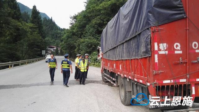 鹤峰县由公路路政、公安交警、运管运政8人组成的联合执法队进驻宣恩,在恩施州治超办的统一安排下,以李家河、岩屋坪为依托,对209国道和325省道沿线超限超载货运进行联合惩戒治理。