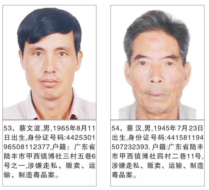 据广东省陆丰市公安局官方微信消息,为严厉打击毒品犯罪活动,严惩震慑毒品犯罪分子,有效维护社会治安稳定,陆丰市公安机关决定对陈贵增等130名涉毒上网逃犯进行公开悬赏通缉,每抓获一名将奖励举报人20万元人民币。