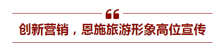 恩施州旅游委坚持州县联动、政企联手、区域联合,外出促销和本地营销相结合,撬动周边、立足全国、放眼全球,以“三会一课”(硒博会、恩施女儿会、恩施故事会和全域旅游大讲堂)为载体,实行广告营销、话题营销、活动营销、达人营销并重,空中(恩施号飞机)、地面(旅游形象广告)、线上(央视和专业网络媒体)并重,知名度和美誉度进一步提升。