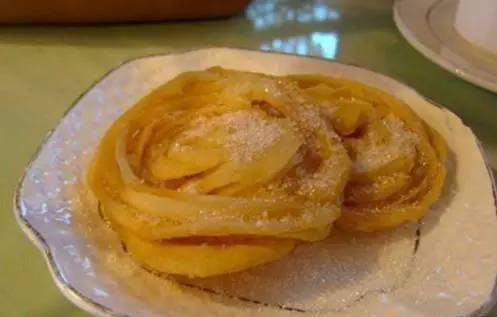此菜以肥膘肉和绿豆沙为主料,以肉裹沙,入锅炸制而成,是筵席上很受欢迎的一种甜食炸菜。制作讲究选料、刀功、火候。成菜色泽金黄,沙馅饱满,外酥里嫩,肥而不腻,香甜爽口。