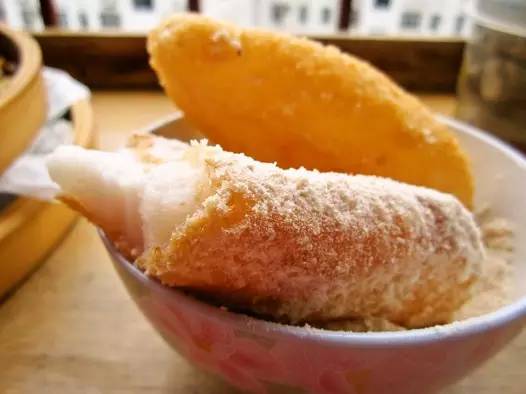 将糯米粉和好并搓成条状,放入油锅中炸至金黄捞出,裹上白糖。金箍条外酥里软,是宜昌人喜爱的小吃。