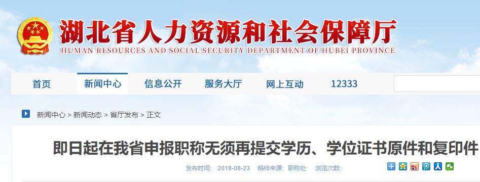 8月6日,湖北省人社厅发文《职称评审,这几项材料可不再提交》,对湖北专业技术职务任职资格部分申报材料进行了精简。