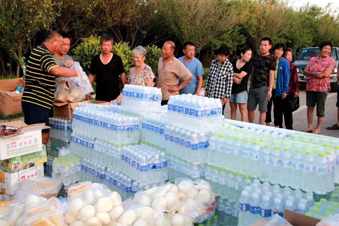 △8月24日,山东潍坊,志愿者在寿光市营里镇为民众免费发放物资。(图自视觉中国)