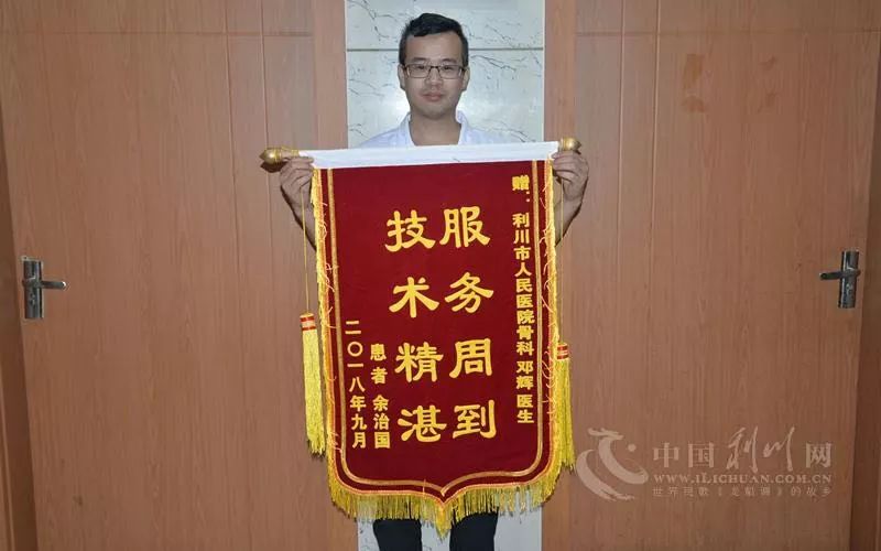 9月17日,65岁的余大爷给利川市人民医院副院长吴建军、骨一科邓辉医生各送来一面锦旗,感谢创造奇迹的医务工作者。