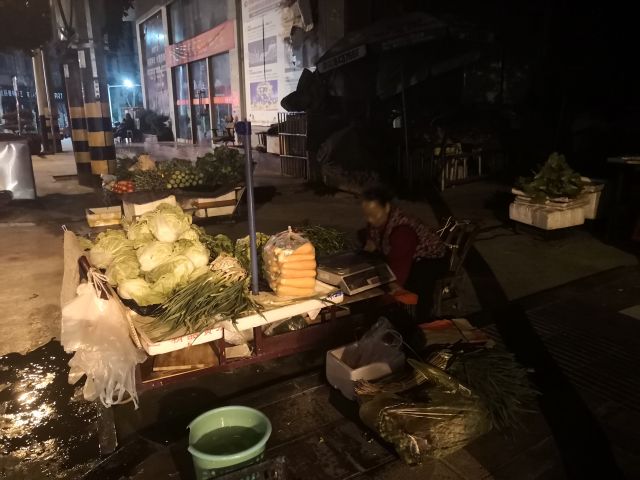 县城周围的菜农和蔬菜大户已“占据”着往日的临街“摊位”在路灯下等待熟悉“二手客”的到来;