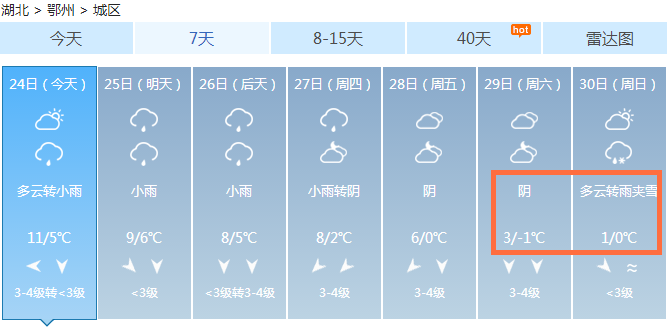 28-30 日,我州低山地区有小雨夹雪,二高山以上地区有小雪,局部有中雪,可能出现冰冻天气;