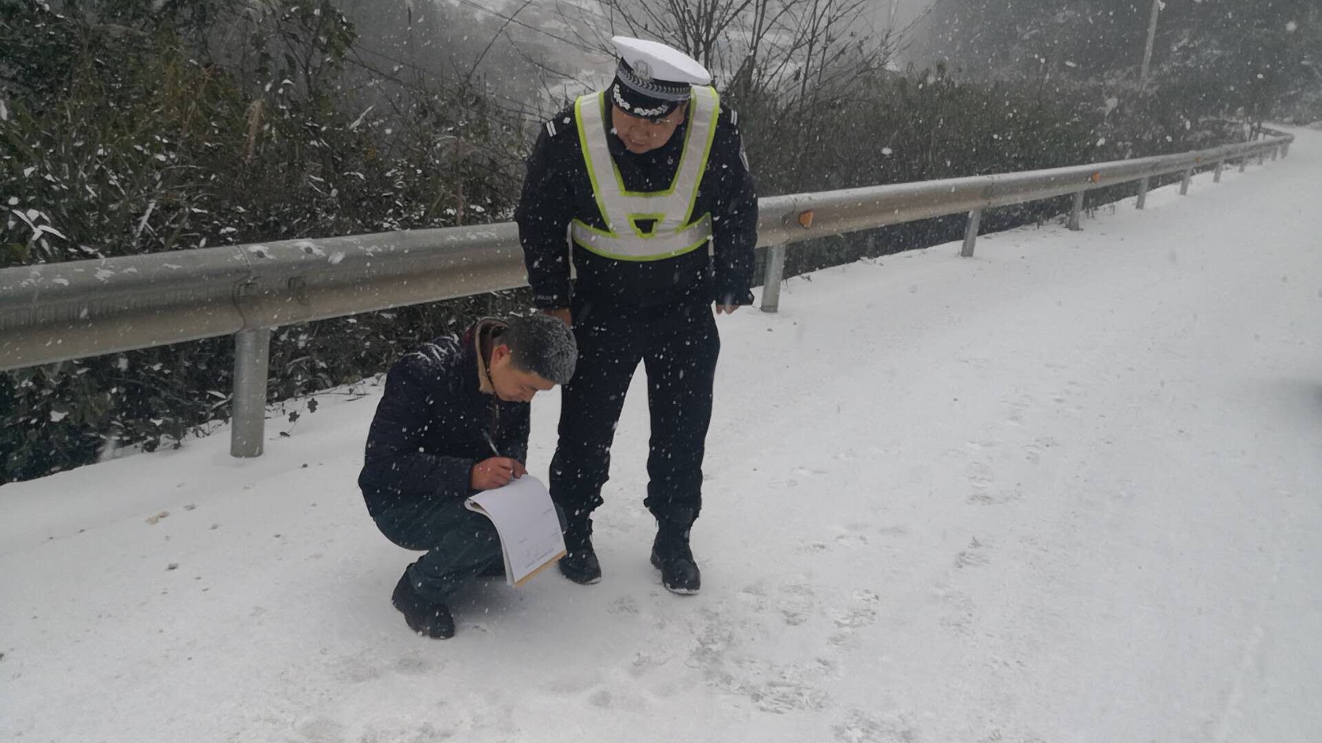 交警蜀黍提醒大家可以绕行,免得桥上车辆打滑,引起交通事故发生!