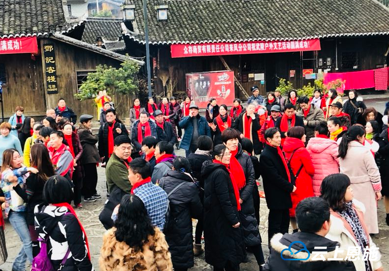 从中我们可以看到 ,一千多人齐聚于此,一起打糍粑,杀年猪,表演小品、唱歌、跳舞,其乐融融。据介绍,参加本次活动的是来自恩施和来凤的徒步爱好者以及当地村民。