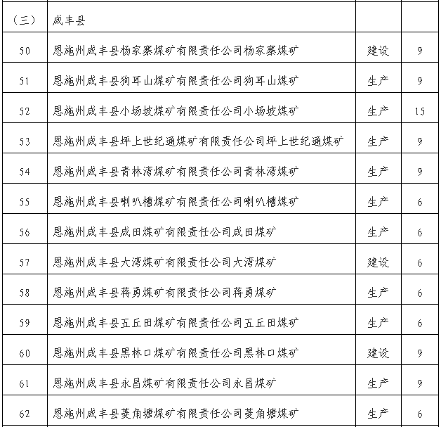 ▼恩施州2018年煤炭行业化解过剩产能关闭退出煤矿详情