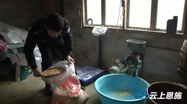 来到韩老汉家,空荡荡的屋里确实没人,他儿女都在外地务工,家里的猪和鸡确实需要人照看。韩老汉紧张之下手忙脚乱喂食,民警上前给他帮忙,帮他把苞谷粉碎好,配好饲料,并帮他把鸡从山上全部抓回来关到鸡圈,把猪全部喂好,最后才带着他离开。