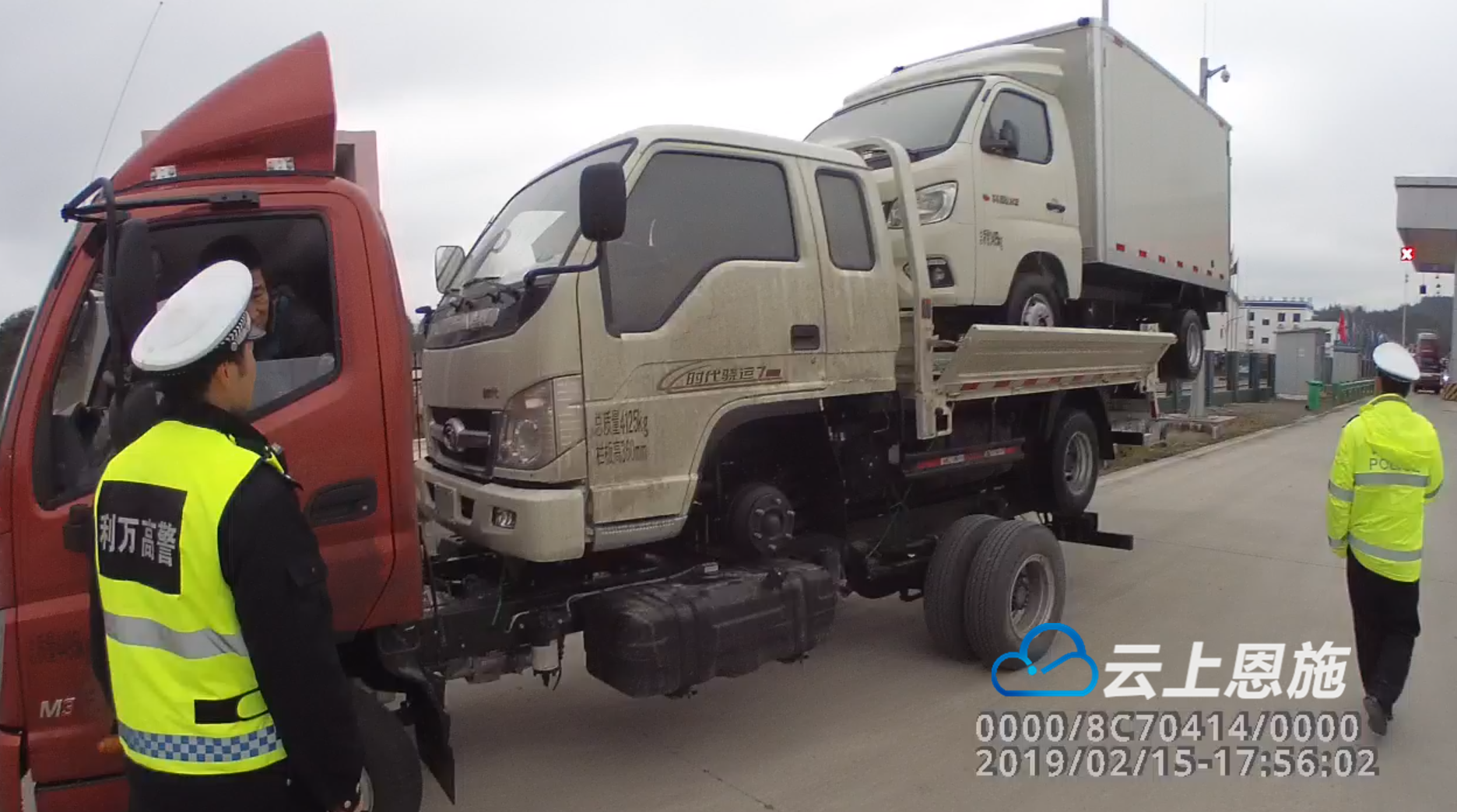 执勤民警立即通过车载喊话器,将该车引导至就近出口。经核查:驾驶员张某、李某驾驶车辆从山东出发,运输货运车辆到万州,为节约成本,两人将运输车辆堆放了两层,并一路行驶到了利川境内,后被利万高警大队民警查获。