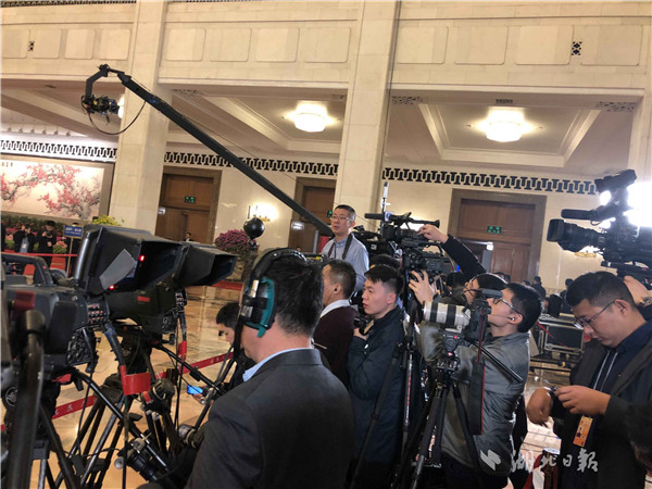 今天上午,第十三届全国人民代表大会第二次会议将在北京人民大会堂开幕。开幕前,在人民大会堂中央大厅北侧将举办首场“代表通道”集中采访活动,现场众多媒体已架起长枪短炮。(湖北日报全媒记者陈会君、彭小萍)