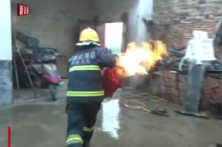 河南平顶山一村民家煤气罐失控喷火,18岁消防员刁海余徒手把煤气罐抱到空旷地带,成功排险。