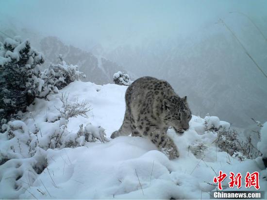 据了解,“一个长江”项目由华泰证券出资支持,旨在以雪豹及金钱豹在内旗舰物种为研究保护对象,摸清野生动物的家底,为制订该区域的保护策略和开展保护行动提供支持,探索长江源区生态、经济、社区平衡发展模式。图为红外相机捕捉到的雪豹画面。