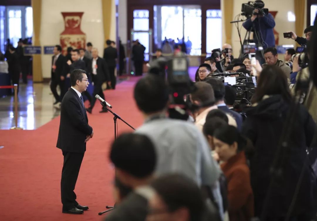 3月12日,十三届全国人大二次会议在北京人民大会堂举行第三次全体会议。这是国家知识产权局局长申长雨在“部长通道”接受采访。 新华社记者金立旺摄