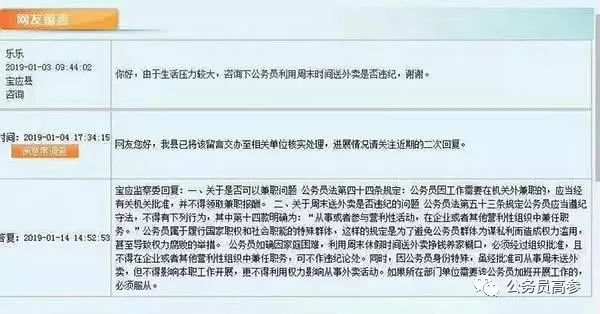 1月16日14时许,宝应县纪委在上述网站回复称: