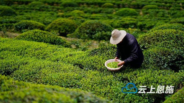 云上恩施报道(鹤峰记者 周龙霞 拍摄 黄澄) 金芽嫩采枝头露,又是一年采茶时。三月底至清明期间,正是采摘明前茶的最佳时节。4月1日,记者在鹤峰县五里乡寻梅村枫树堡看到,生态大蔸茶茶园里一派繁忙景象,当地茶农正在抢抓农时采摘春茶,巧手翻飞间,茶篓里不一会儿就装满了半寸长短的新芽。