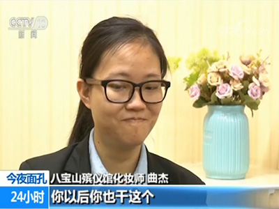 八宝山殡仪馆化妆师 曲杰:正常去世的遗体,我们就是自然安祥,然后让他体面地去见他的亲朋好友。要是像那种非正常(死亡)的,我们只能说尽全力,尽量恢复地让他看起来更加自然。