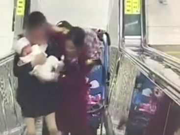 湖北武汉一抱婴儿的女子乘扶梯时突然重心不稳,眼看就要摔倒。地铁工作人员张舟飞奔上前接住女子,用自己的身体顶着女子直到她站稳。