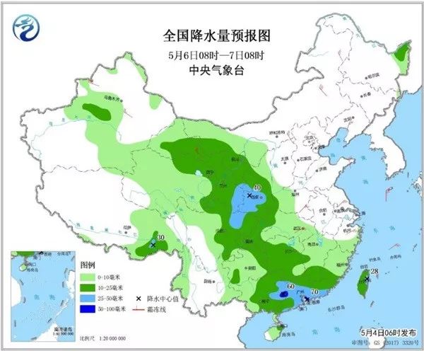 降雨方面,今天起,我国将出现大范围降雨天气。贵州东部和南部、江南中南部、华南等地的部分地区有大雨或暴雨,局地大暴雨,并将伴有短时强降水、雷暴大风等强对流天气,对返程交通出行安全造成不利影响。