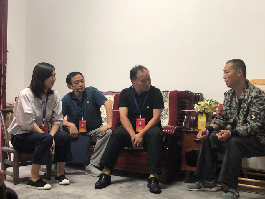 图为黄波(右二)在书院社区贫困户张志杰家中走访