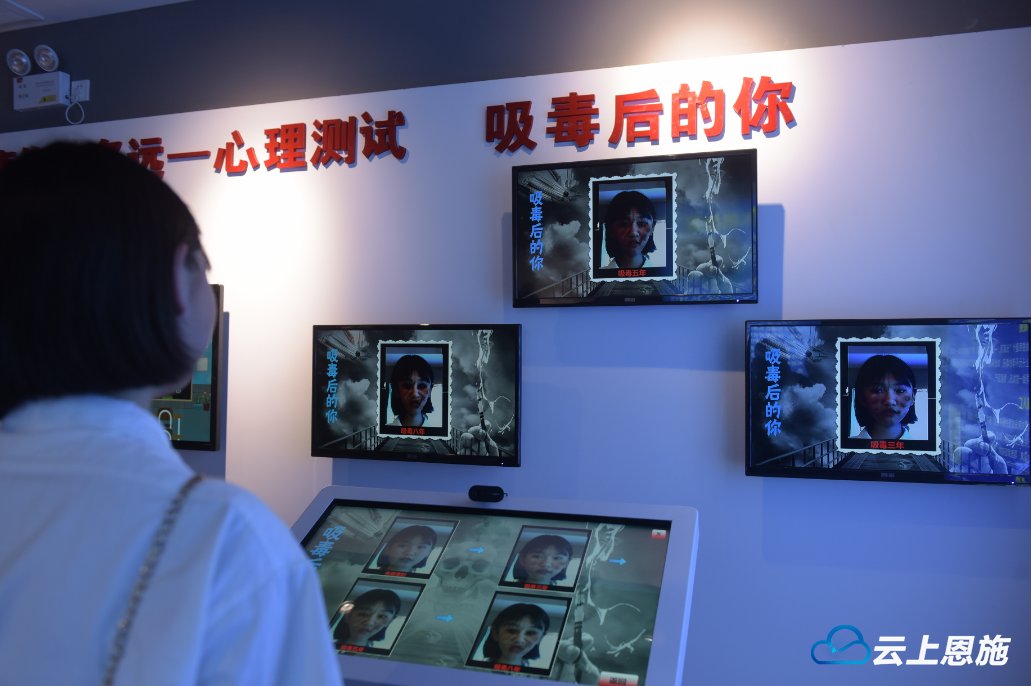 据了解,宣恩县未成年人法治教育基地、宣恩禁毒警示教育基地位于宣恩县珠山镇民族实验中学原教职工餐厅四楼,建筑面积为589.30平方米,投资85万元,作为便民利民公益性教育基地,本着教育为主的原则免费向广大人民群众开放。该基地分为序厅、毒品的流入和禁毒历史厅、毒品科普厅、毒品危害和预防厅、互动厅五个厅。分别展现了毒品的历史及沿革,毒品的品种和名称、吸毒前后身体机能的变化、吸毒后的模样、毒驾的体验、宣恩县禁毒的历史和成果,生动的画面让参观者能够直观的感受到毒品带来的危害,从而增强广大人民群众的识毒拒毒防毒能力,共享健康无毒生活。