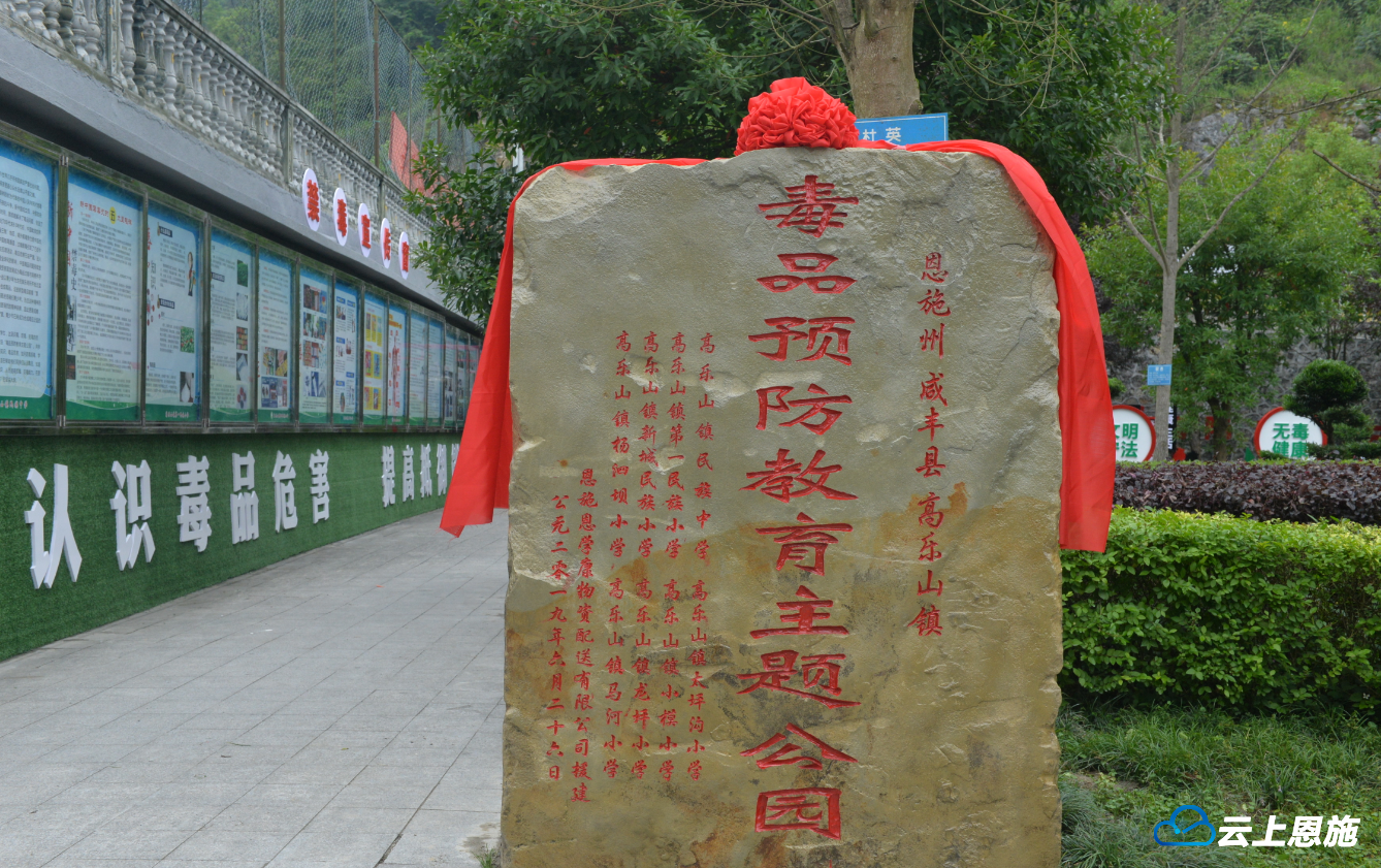 咸丰县首个禁毒宣传主题公园——毒品预防教育主题公园正式揭牌。该公园位于咸丰县高乐山镇民族中学校园内,园内设禁毒宣传栏、警世钟、禁毒雕像等多个宣传载体,涵盖毒品危害知识,毒品种类辨别知识,毒品法律法规知识等多方面内容。该公园投入使用后将为辖区及周边的学校禁毒教育活动提供参观学习的平台。