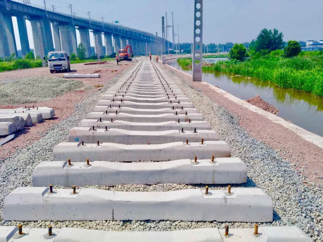 ▲6月30日,荆州煤炭铁水联运储配基地铁路专用线作业现场部分路面已铺好轨枕。