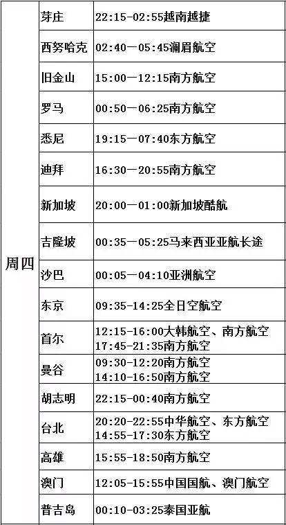 (仅供参考,因航班可能存在调整,详细以各大航空公司信息为准)