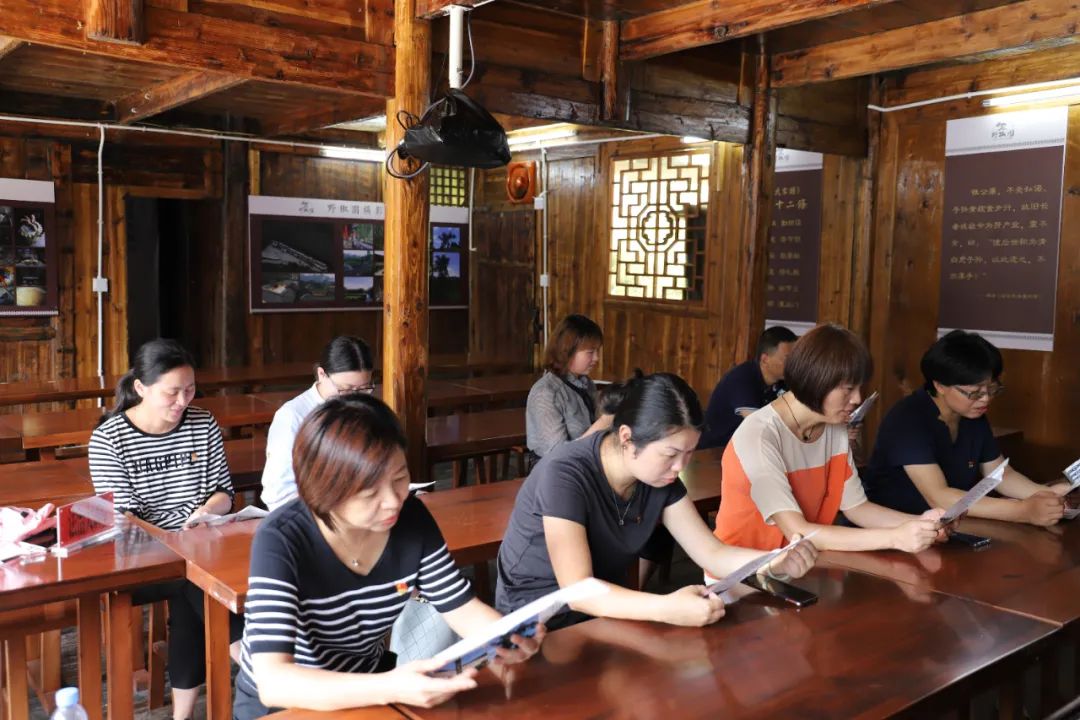 在杨氏家族“四合天井”古侗寨建筑群,大家听取杨氏先祖杨震“四知堂”的故事,走在“清风”路上,深感传承杨氏廉政家风之必要。