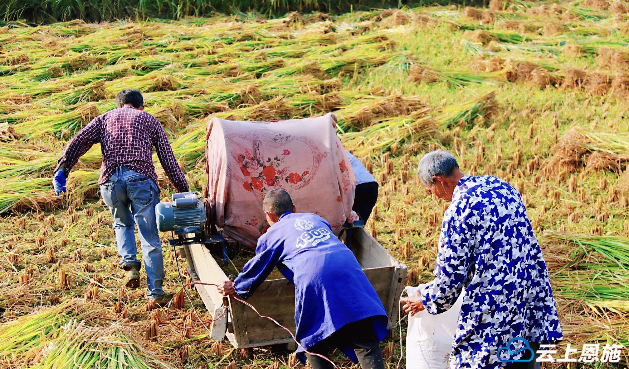 清晨,建始县长梁白云村,田野上,稻菽仿佛千重之浪,劳动的身影,格外潇洒。今年水稻长势喜人,整个村子逞现出一派祥和丰收的新景象。 (来源:云上恩施 建始联通记者 黄妮 通讯员 葛进东 责任编辑:朱晓涵 审核:孙跃)