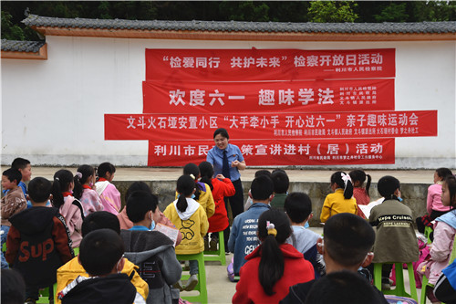 本网讯(通讯员尤玉茹 吕金璐)5月27日,“六一”国际儿童节到来之际,利川市检察院联合该市民政局、文斗镇政府、文斗镇派出所、梦之舟志愿服务队在文斗镇火石垭易地扶贫搬迁集中安置社区举行“检爱同行 共护未来”检察开放日暨“欢度六一 趣味学法”活动。邀请人大代表、政协委员、团委代表、妇联代表、学生、家长等150余人共同参与。