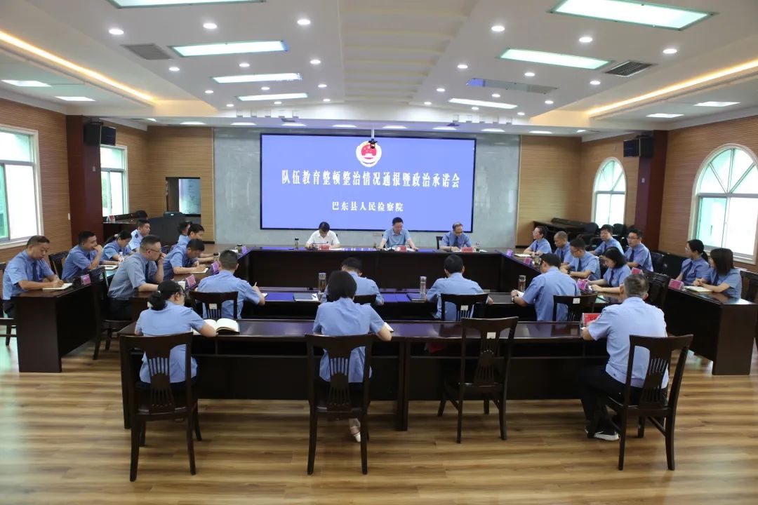 6月20日上午,巴东县人民检察院召开政法队伍教育整顿整治情况通报暨班子成员政治承诺会。省第十三指导组驻检察院专班许诗谊,县委常委、副县长董新华到会督导指导。党组书记、检察长郎艳辉主持会议。