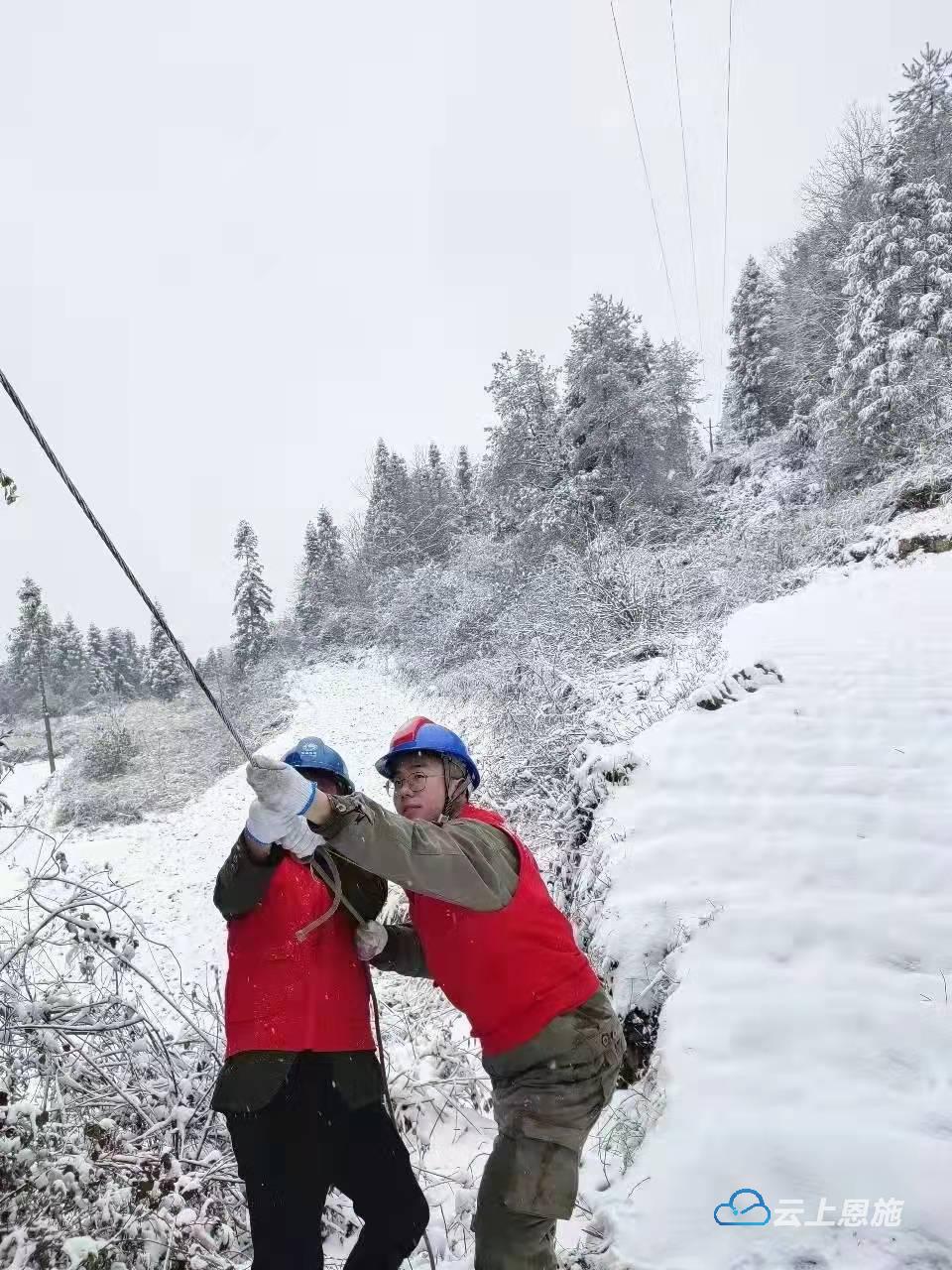 国网恩施供电公司抢险人员冒雪巡线抢修