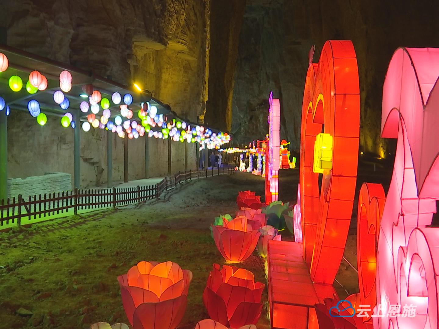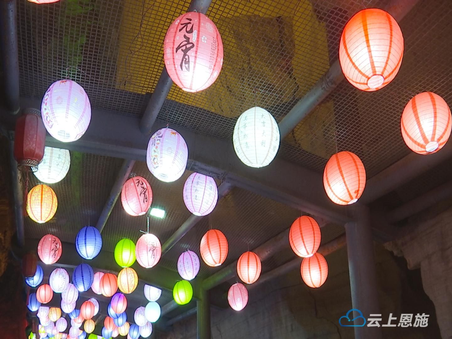 据了解,利川腾龙洞内的25组特色主题灯组是从2022年1月开始设置的,元宵节来临之际,洞内又新增了很多元宵节的元素,让游客可以一边游玩,一边闹元宵赏灯会,不再局限于夜间赏灯了。