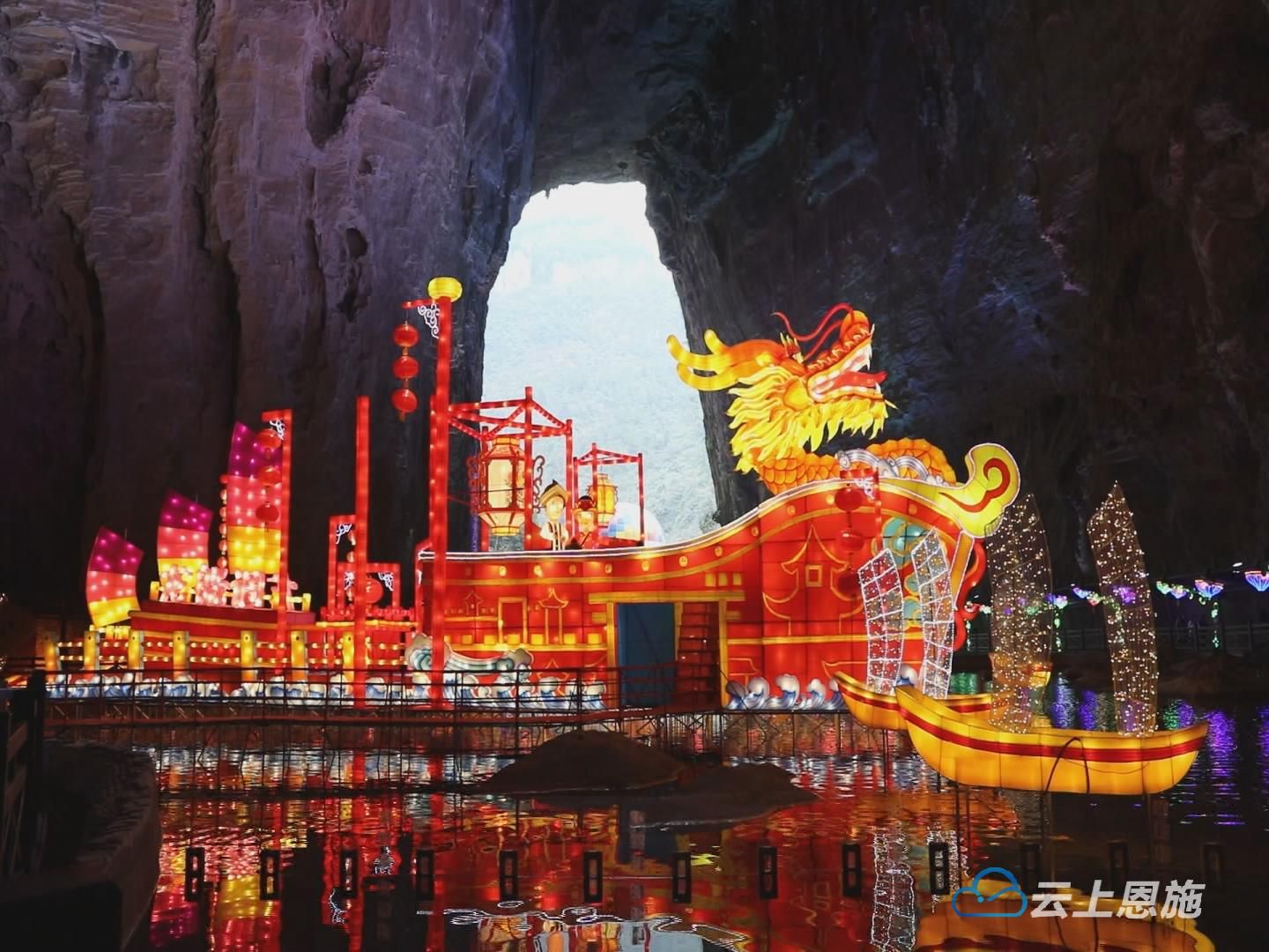 独特的、庞大的洞穴系统,以及25组以利川本土民族文化为元素的特色主题灯组,形成了水面、地下,空中交叉的灯会新格局,这般别样的洞内灯会感受,给了游客们别样的元宵韵味,因此慕名而来的游客也是络绎不绝,这里也迅速成为了全州乃至州外游客的又一打卡热门地,特别是一些民俗文化为主题的灯组,不仅给了游客们耳目一新的感受,也让身临其境的游客学会了很多恩施当地的民族文化和历史故事。