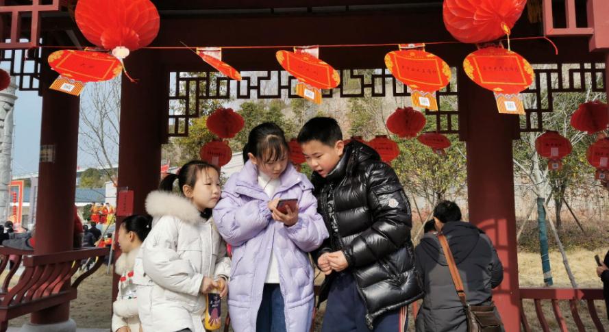 一旁的亲水广场上,市民们正积极参加元宵节灯谜有奖竞猜活动。600个融知识性、趣味性为一体的趣味谜语悬挂在空中拉线上供市民竞猜。灯谜内容广泛,分为字谜、成语、知识、生活等类别,既具娱乐性,又具知识性,让大家乐中有学,共同领略中华语言的无穷奥妙。