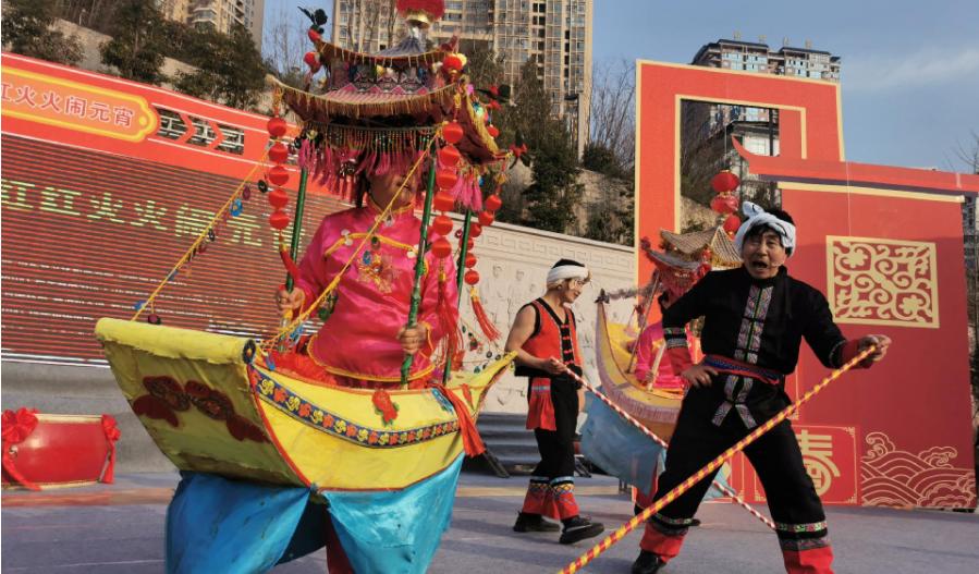 2月15日,巴东县举办“多彩非遗·红红火火闹元宵”系列活动。文化传人闯关赛、灯谜有奖竞猜、闹元宵文艺汇演等活动将红红火火、热热闹闹的元宵“民俗大餐”送到群众身边。