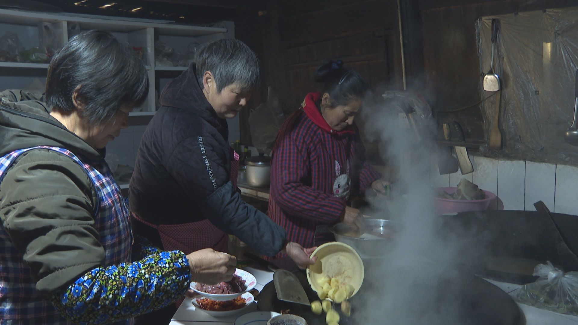 曹申高老伴儿和邻居在忙着张罗这顿饭