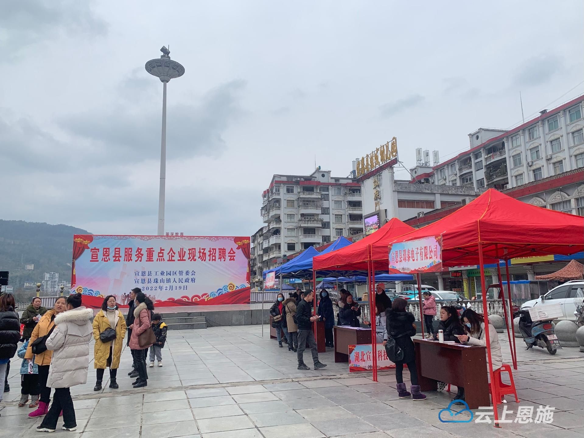为助力企业开门红,2月19日,宣恩工业园区联合珠山镇,在宣恩县城河滨广场上举办了宣恩县服务重点企业现场招聘会,吸引了不少求职人员前来咨询。