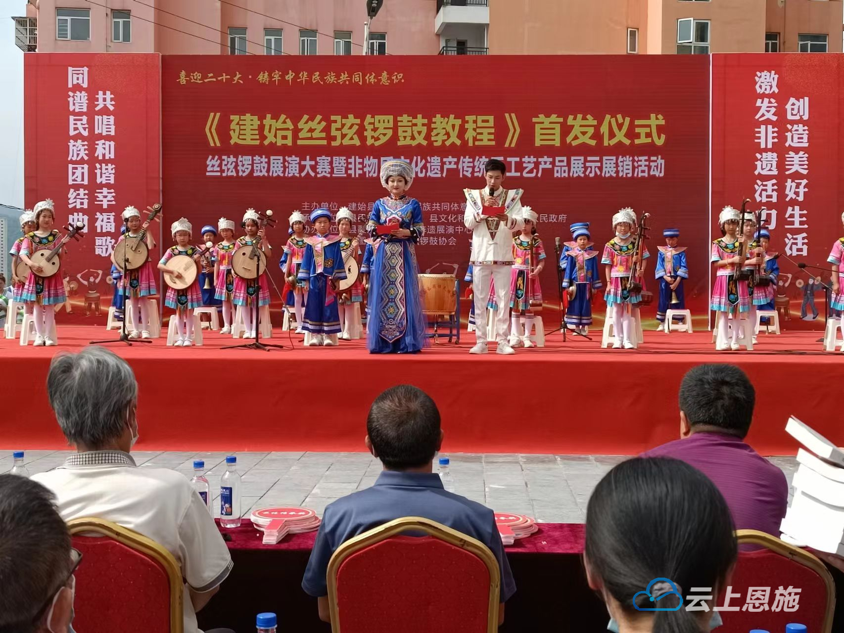 在我国“文化和自然遗产日”到来之际,建始县举办《建始丝弦锣鼓教程》首发仪式、丝弦锣鼓展演大赛暨非物质文化遗产传统手工艺展示展销活动。