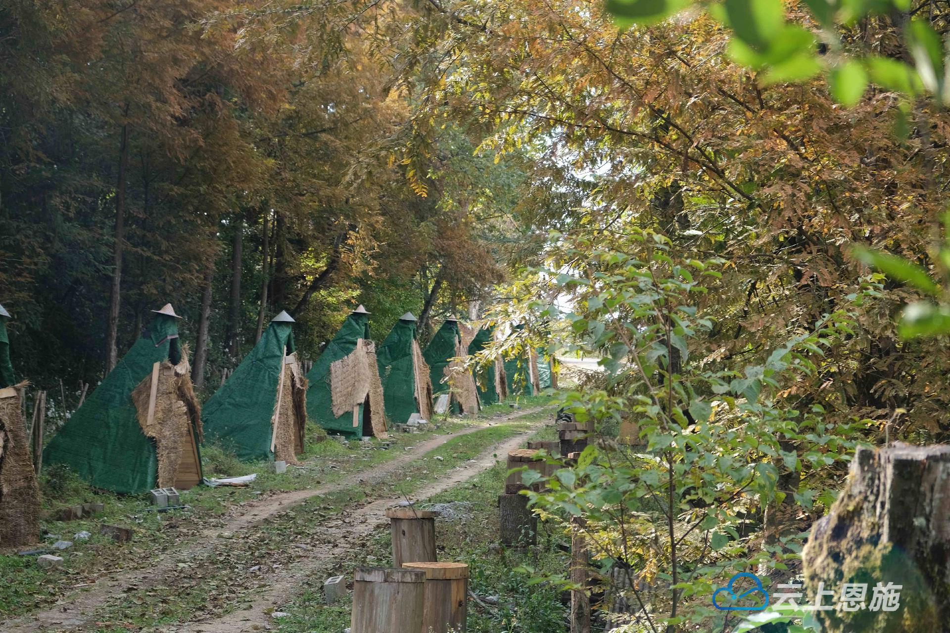 霜降时节,气温下降。为更好地帮助中蜂蜂群越冬、做好蜂群的保种选育工作,鹤峰县三里荒的种蜂场内建起了一排头戴小帽的绿色“别墅”。
