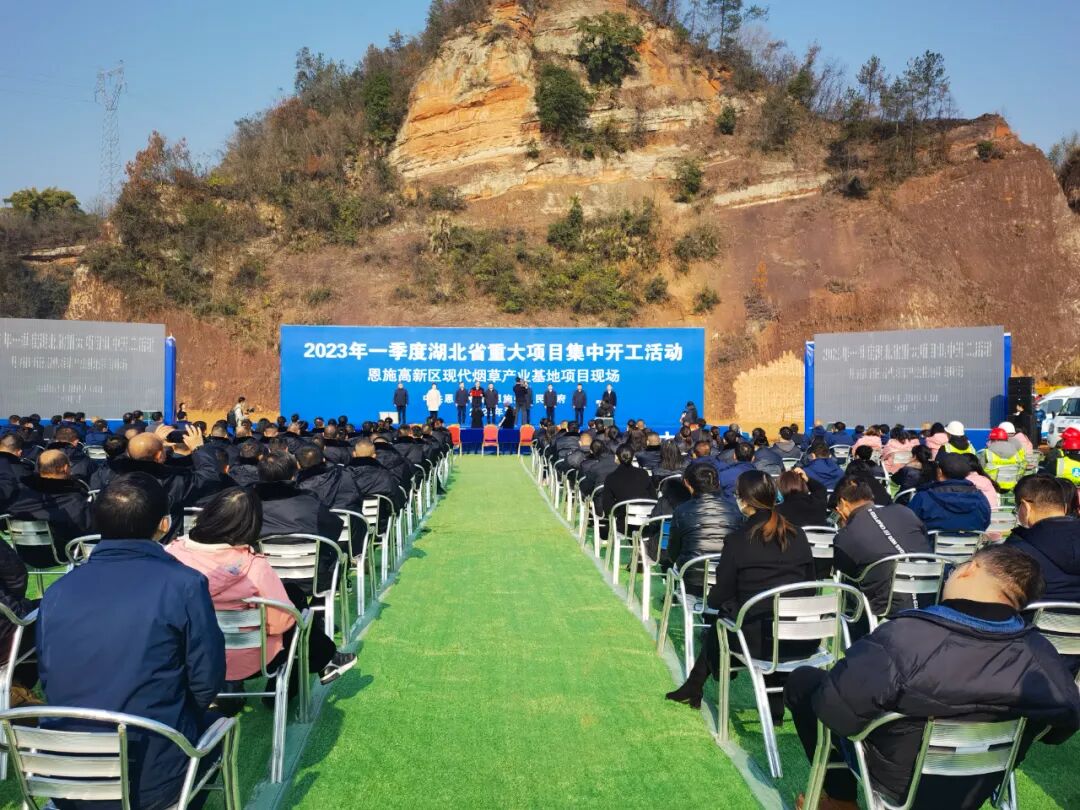 1月31日上午,全省举办2023年一季度重大项目集中开工活动,恩施州在恩施高新区月亮湾生物城·现代烟草产业基地项目建设现场设分会场。