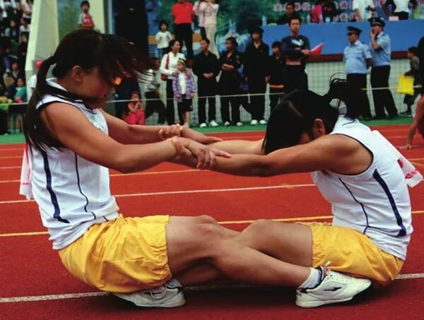 1、比赛时双方互相双手要紧扣,双方身体略向后仰,形成船体形,利用腰部和腿部力量起伏前进。