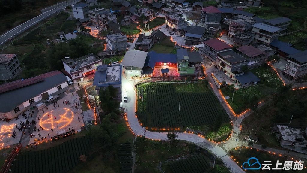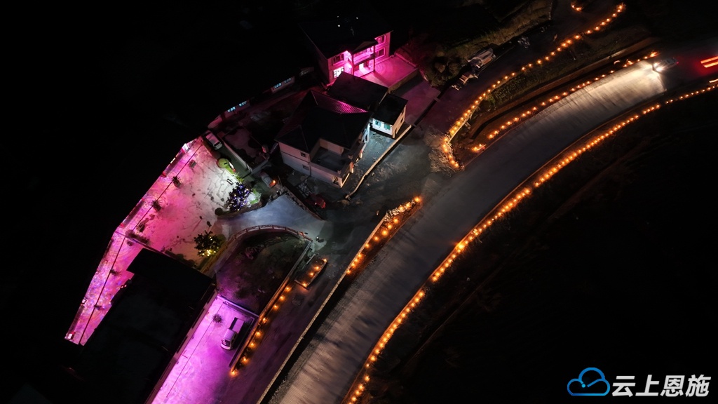 远望处,穿村而过的351国道两边也被路烛点亮。