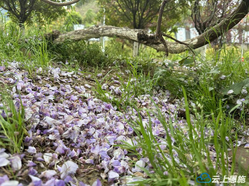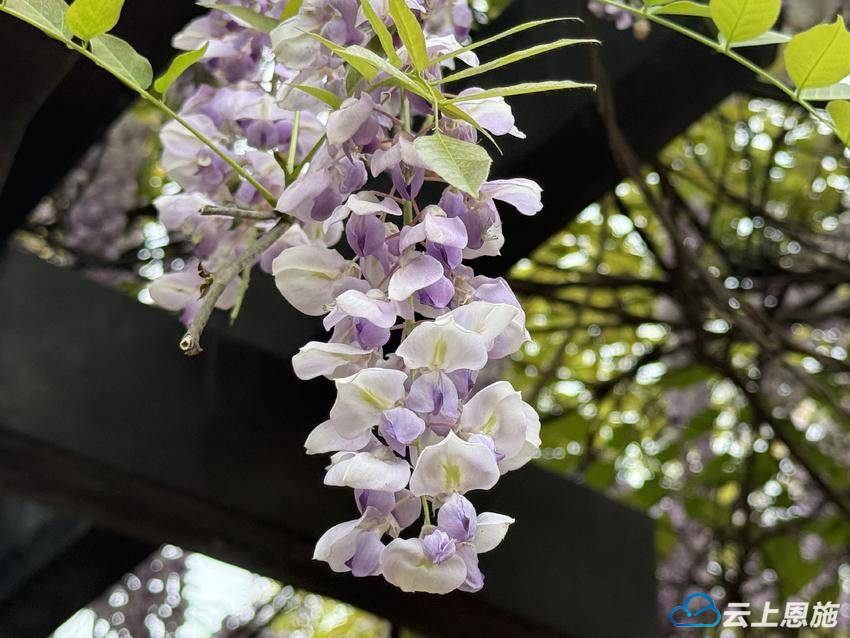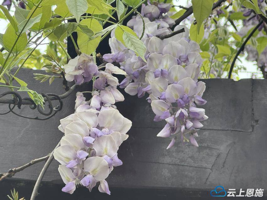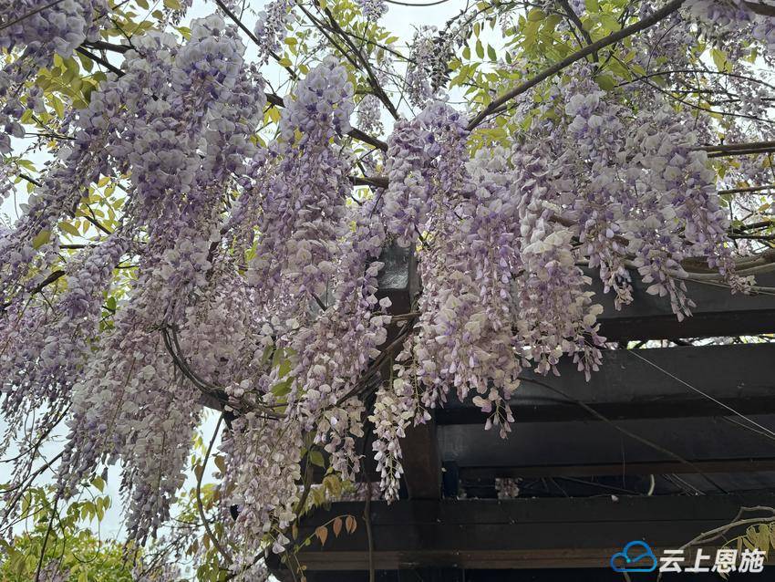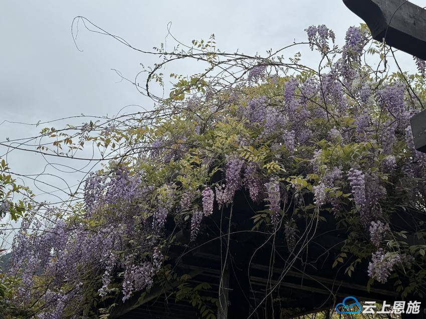 (来源:云上恩施 鹤峰通联记者 周琦 一审:谷和庆 二审:黄頔芳 三审:孙跃) 温暖的春风里,飘溢着淡淡的花香,一阵阵沁人心扉。我循着花香四处搜寻,不经意抬头,一大片摇曳梦幻的紫藤花如流苏般轻柔垂下,就这么撞入了眼帘。 只见一簇簇、一串串,深深浅浅的紫色花瓣从绿色藤蔓上披垂下来,在风中轻轻摇曳,虽冷傲,但幽雅,看起来高傲却不失风度。紫藤花日渐旺盛了,远远眺望,满目紫艳,远看像熟透了的葡萄。如今正值紫藤的盛花期,动辄开成紫色的花瀑布,又宛如一帘紫色幽梦,令人沉醉不知归去。
